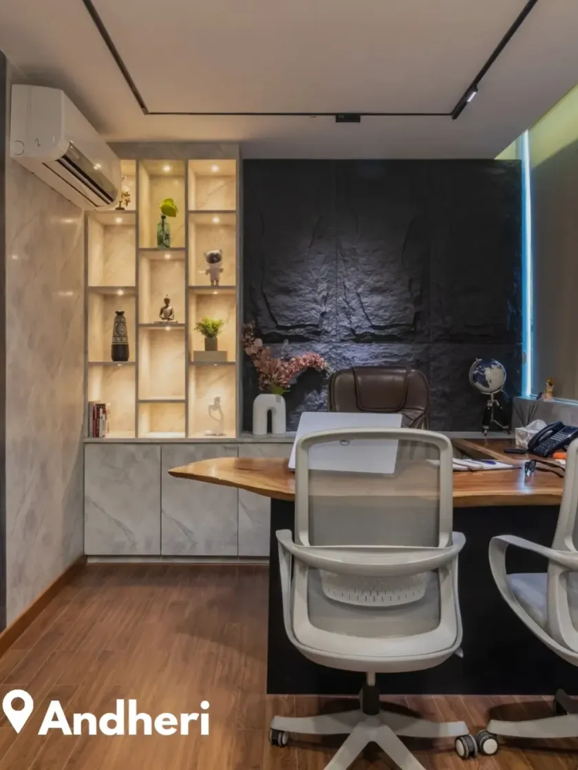 We extend our design philosophy to commercial spaces, creating offices that are both professional and inspiring. Our approach is to build environments that foster productivity and reflect a company's brand identity, using a sophisticated mix of materials, ergonomic furniture, and thoughtful lighting.