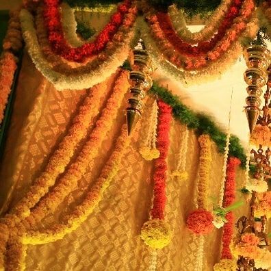 We celebrate the richness of Indian traditions with our artisanal decor for festivals and intimate functions like half-saree ceremonies. We use vibrant marigold garlands, traditional brass kumbahs, and handcrafted elements like leaf parrots to create an authentic and festive atmosphere.