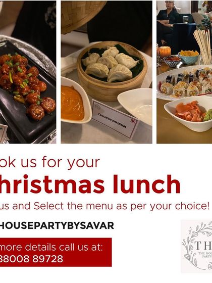We set up live cooking stations and handle everything from food to decor for home parties, so you get fresh, customizable catering without per-plate charges.