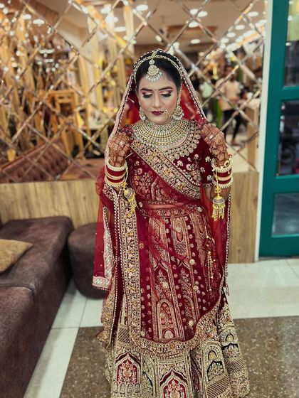 We specialize in creating the complete traditional Indian bridal look from start to finish. This includes long-lasting, HD makeup perfect for cameras, intricate hairstyling with floral arrangements, and expert dupatta and jewelry setting to make you feel like a queen on your big day.