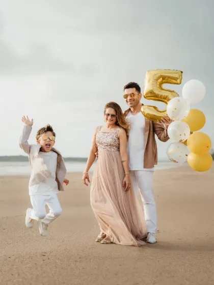 The beach provides a stunning and playful backdrop for capturing your child's personality and family fun. These sessions are perfect for celebrating milestones like a fifth birthday or just freezing a beautiful family memory by the sea, especially during the magical golden hour.