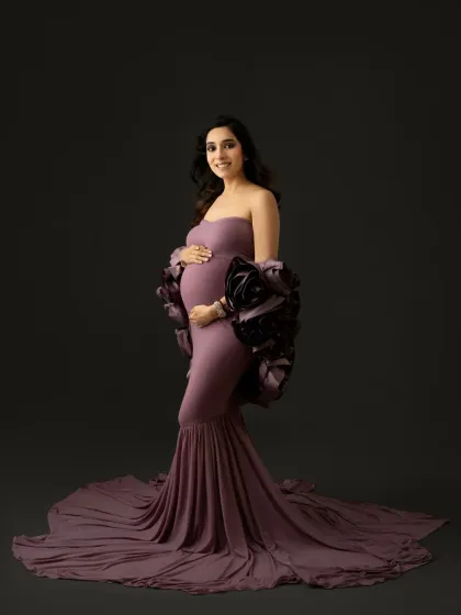 I do maternity photoshoots in my Malad West studio with different styles, provide dresses, guide you through poses, and you can bring your family and pets for natural, comfortable photos.
