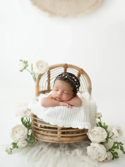 These sessions are for babies in their first few weeks, focusing on their peaceful, curled-up poses. My safe and cozy Malad West studio is equipped with a variety of soft wraps, props, and gentle lighting to create these timeless images.