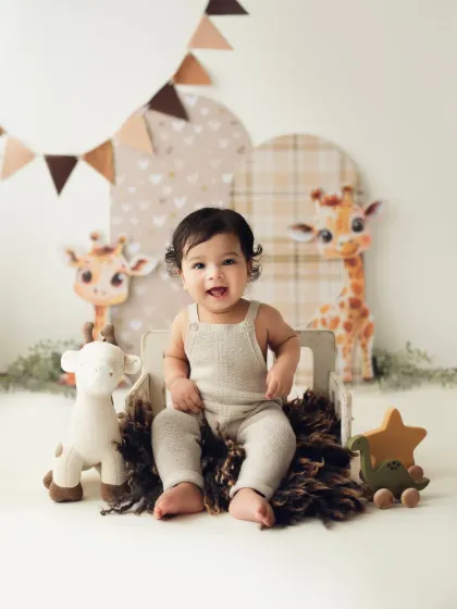 From their first unsupported sit to their big first birthday, I capture your baby's growing personality. These sessions are full of smiles, giggles, and fun setups in my studio to celebrate how much they've grown.