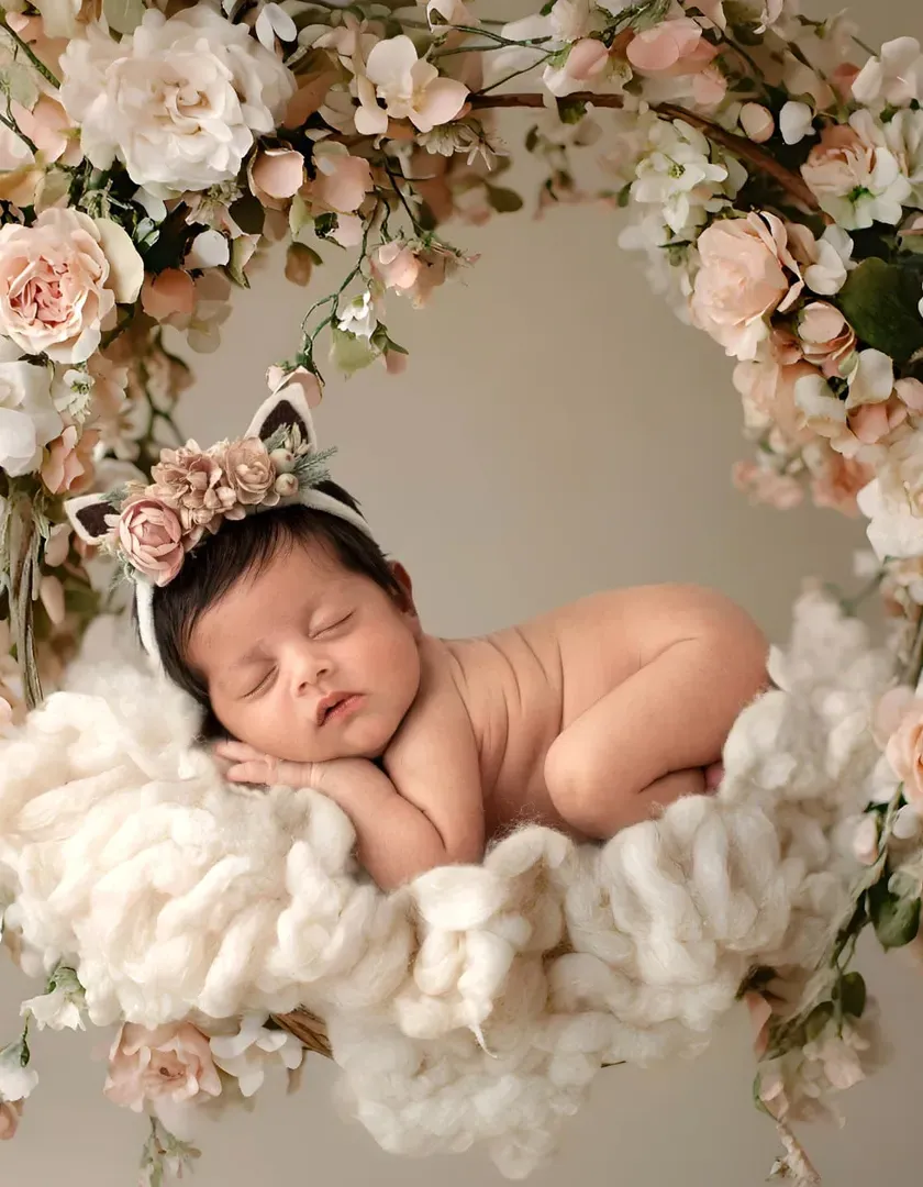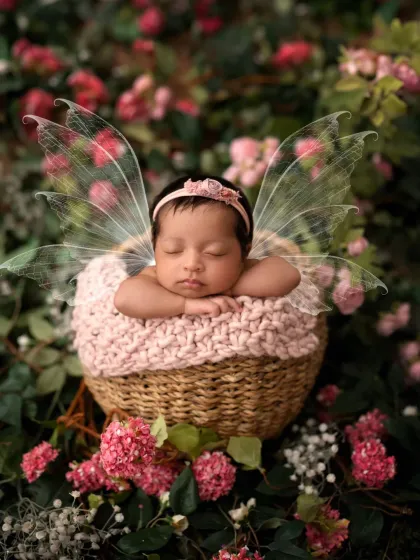 For those truly impossible and magical shots, I use digital artistry to create stunning composite images. I combine a safe studio photo of your baby with a fantastical digital backdrop, creating a one-of-a-kind piece of art for your home.