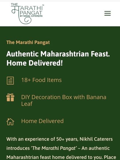 We deliver complete Maharashtrian festive meal hampers with 18+ veg dishes, banana leaves, decor kit, and festival-specific menus so you can host a traditional pangat at home without any hassle.