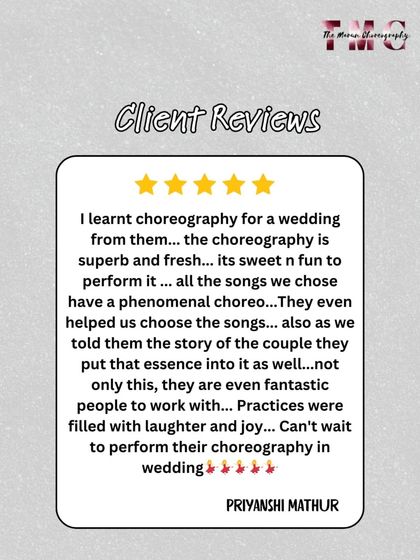 Hey, we’re Megha and Arun – The Marun Choreography, yaani TMC. Dance is our crazy obsession – trained at Shiamak Davar’s, 9-10 saal ka experience, and now, our own studio! Opened our dance home on 17th March 2024 – pura dil se. For us, dance isn’t just about steps – it’s about full-on joy, new friendships, and memories you’ll laugh about even after the wedding’s over.