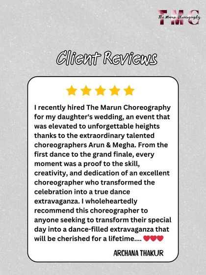 Hey, we’re Megha and Arun – The Marun Choreography, yaani TMC. Dance is our crazy obsession – trained at Shiamak Davar’s, 9-10 saal ka experience, and now, our own studio! Opened our dance home on 17th March 2024 – pura dil se. For us, dance isn’t just about steps – it’s about full-on joy, new friendships, and memories you’ll laugh about even after the wedding’s over.