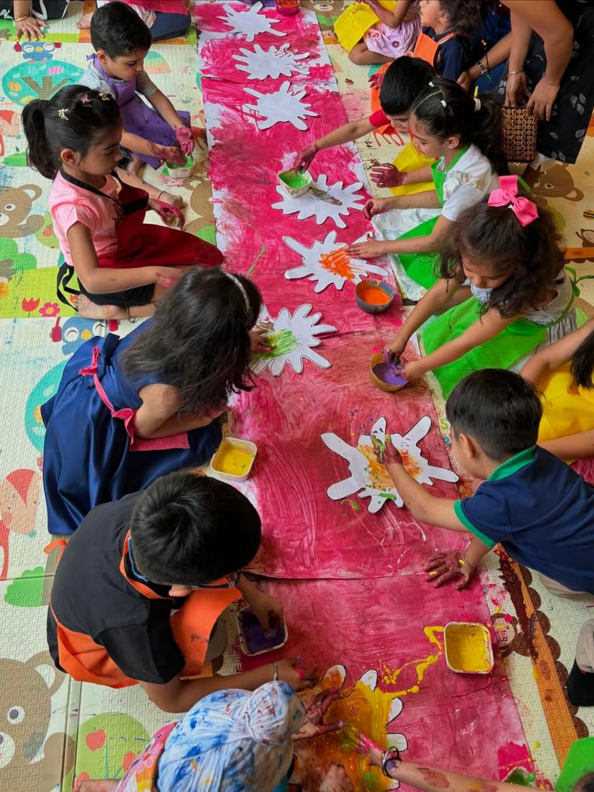 This is where the real fun happens! We dive into giant group canvas paintings where everyone contributes, and create amazing take-home crafts like marbled mugs that every child gets to keep. It's all about process, creativity, and making something wonderful together.