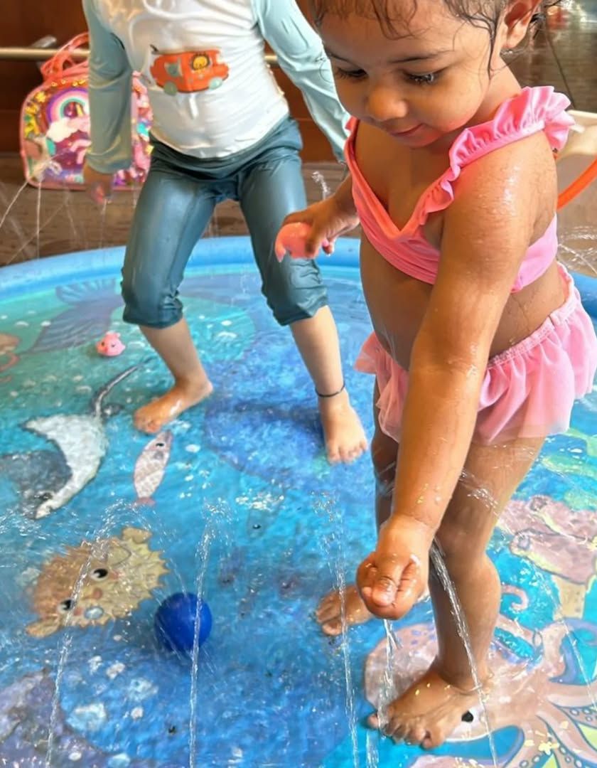 Nothing beats the fun of splashing around. My sessions often include safe, supervised water play with inflatable pools, sprinklers, and fun water toys, perfect for cooling off and sensory exploration.