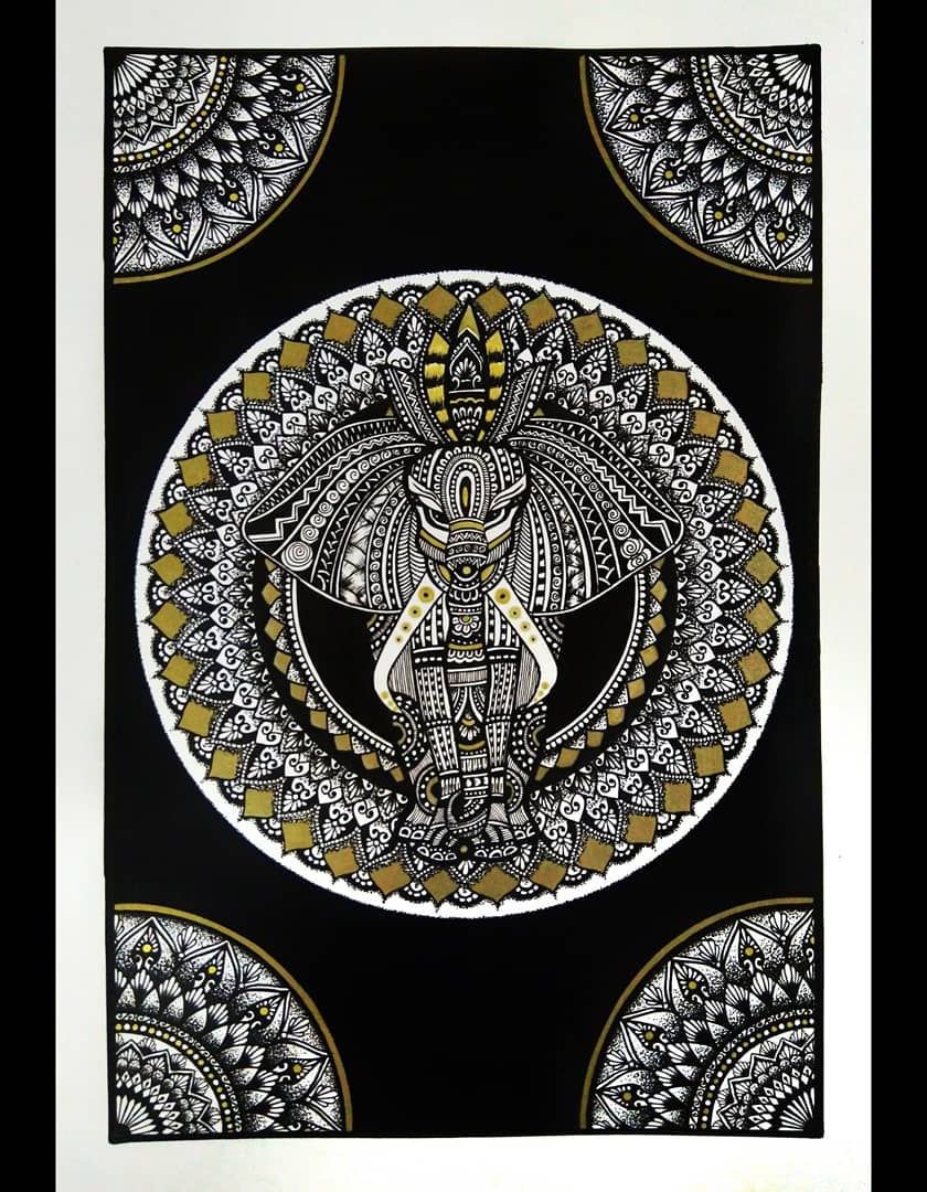 Some mandalas tell a specific story or represent a powerful idea. Here you can see examples like the 'Inner Peace' mandala and the elephant mandala, which blend traditional patterns with meaningful symbols.