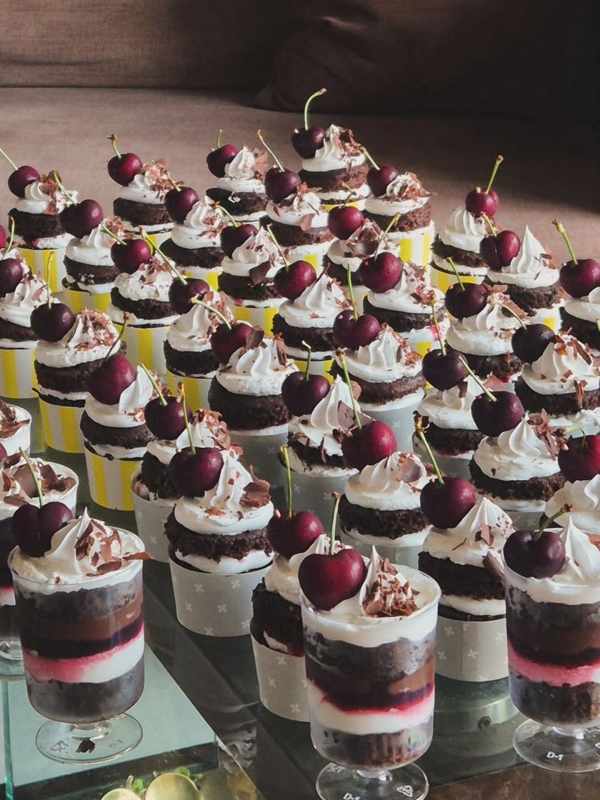 Perfect for parties and individual treats, I offer a variety of single-serving desserts. This includes my multi-layered Black Forest cupcakes and classic dessert jars like Tiramisu, all packed for easy enjoyment.