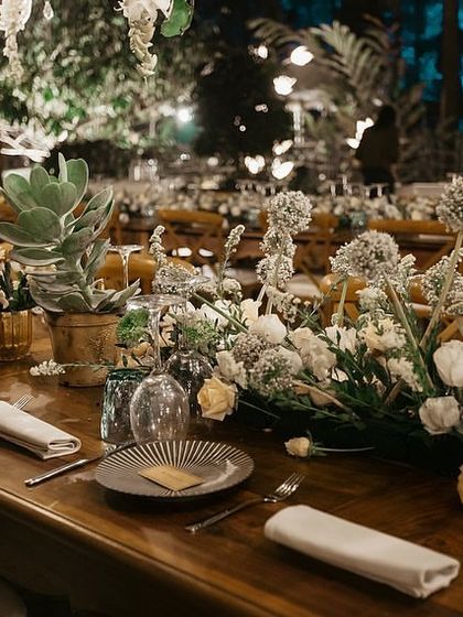 - Premium table decor with centerpieces and candles.