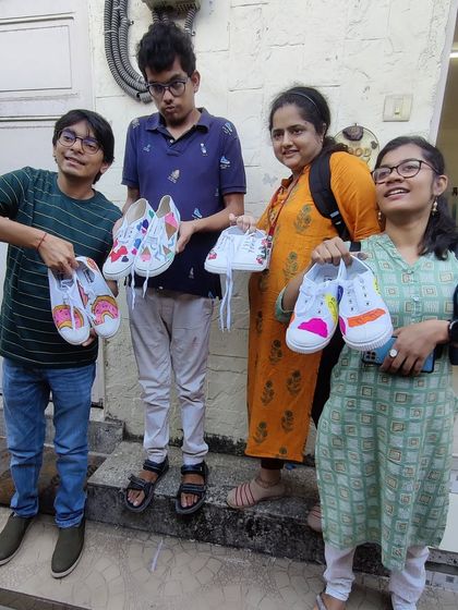 I love hosting workshops for kids and community groups, like the sessions I did with the Mann Deshi Foundation. We focus on fun and self-expression, painting on tote bags or paper, ensuring everyone leaves with a smile and a piece of art they're proud of.