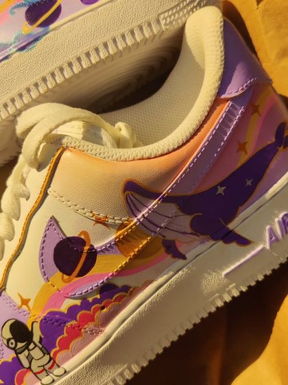 We hand-paint your sneakers, bags, jackets, and accessories with any design you want, using durable paints for a custom look that lasts.