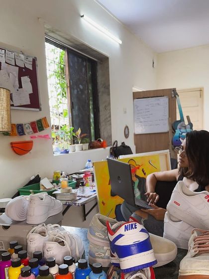 Hi, we’re The Mood Box. Dentist vibes, sure, but now it’s all about art, Mumbai hustle and a studio full of color. We’re into making art you can wear – sneakers, jackets, whatever you fancy. Some days we’re painting with kids, other days it’s Adidas events, and sometimes it’s just us, chai and pahad (mountains), turning travel pics into digital art. We mess up, we learn, we keep going. That’s our jam.