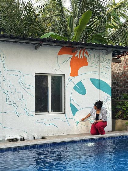 - Love experimenting, whether it’s an abstract last-minute piece at a hostel in Wayanad or a giant poolside wall full of tropical vibes.