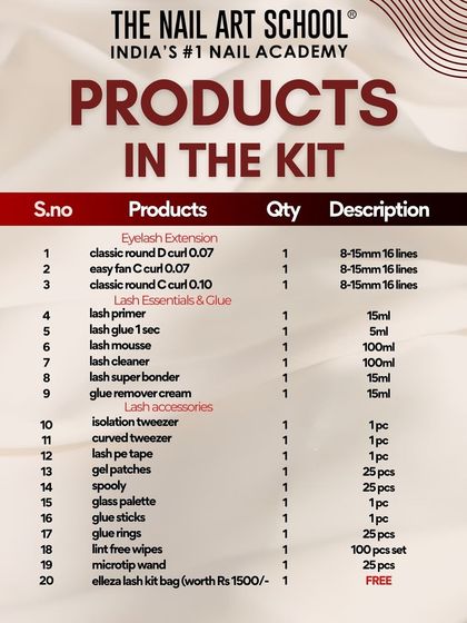 We set you up for success from day one. All our certification students receive a discount on a professional vanity kit packed with high-quality Elleza lash products, from glues and removers to tweezers and lashes.