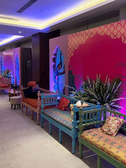 Luxury & Thematic Decor - Want a pastel dream engagement or a rainbow rush mehendi? We make your theme feel alive, down to every detail.