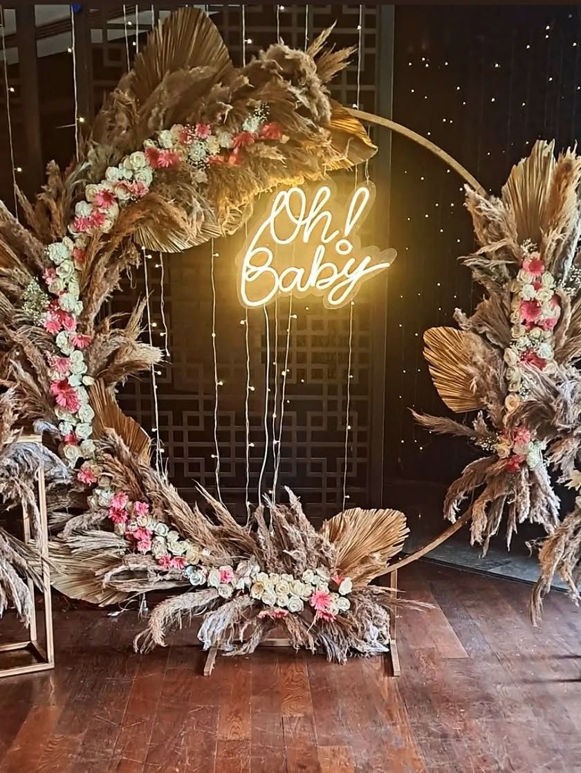 I create heartwarming and beautiful setups to celebrate new arrivals. Whether you envision a classic blue and gold theme, a rustic boho 'Oh Baby' party, or a grand name reveal, I design memorable decorations for your baby shower or naming ceremony.