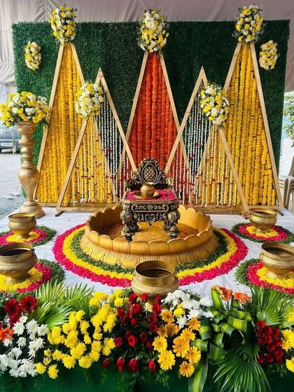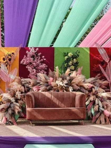 I specialize in creating bright and joyful environments for your Haldi and Mehendi ceremonies. My designs incorporate traditional elements like marigolds and urlis, as well as modern touches like floral walls and unique seating arrangements, all bursting with color.