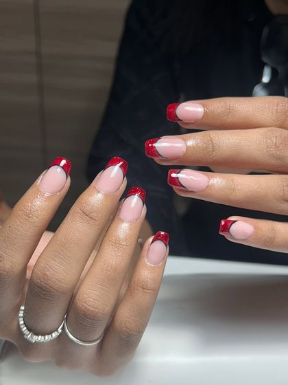 We do gel and acrylic extensions, BIAB for nail biters, overlays, Russian manicure, and custom nail art using only TPO-free products for healthy, long-lasting nails.