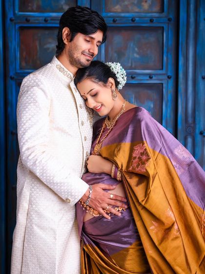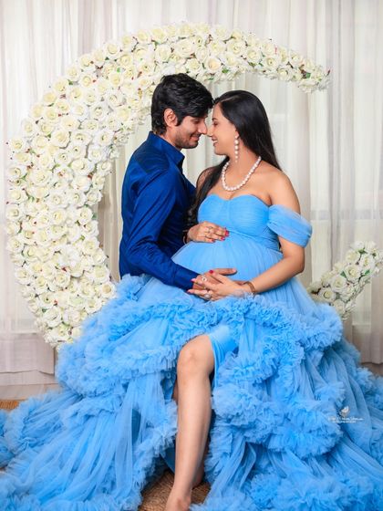 Our client closet is stacked with glamorous maternity gowns in lots of colors and styles. Flowing, ruffled, off-shoulder - you name it. You’re always welcome to bring your own outfits too. Odia saree, matching tees - it’s your shoot, so add your own touch.
