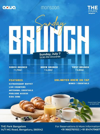 Our Sunday Brunch is a weekly celebration of food, drinks, and relaxation. Held at Monsoon and Aqua, it features an extravagant buffet, exclusive live counters, artisanal cocktails, and poolside access, with packages to suit every mood.