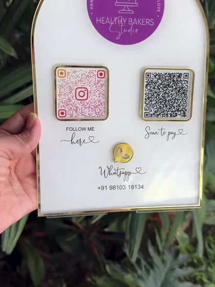 - Personalized QR code display stands that actually look good. These aren’t just payment stands - they hold multiple QR codes (UPI, Instagram, WhatsApp), styled to match your brand vibe, with custom shapes and luxe touches like gold lettering.