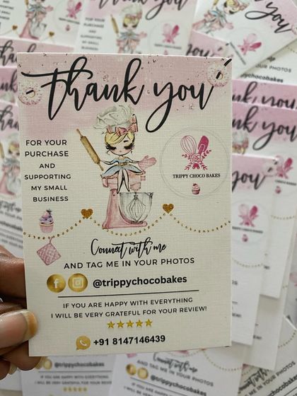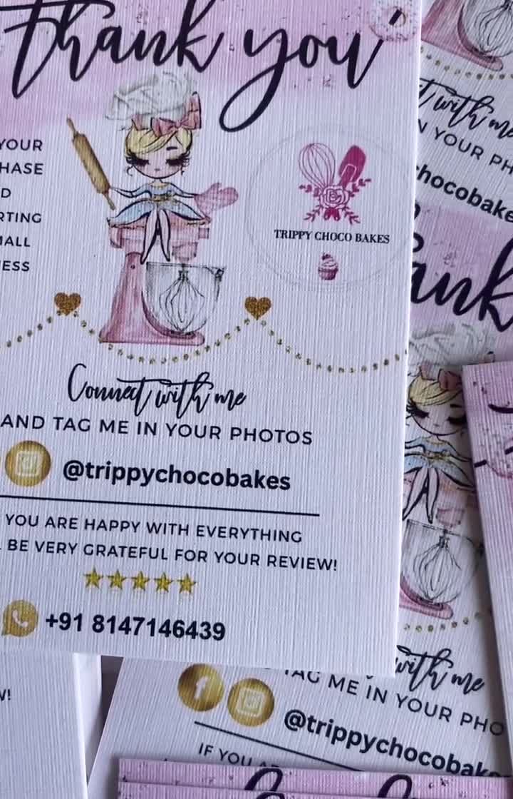 Make every interaction memorable with our custom-designed business stationery. We create everything from thank you cards that show your appreciation to cake care instructions that protect your hard work, all designed to reflect your unique brand identity. We handle the entire process from design to printing and shipping.