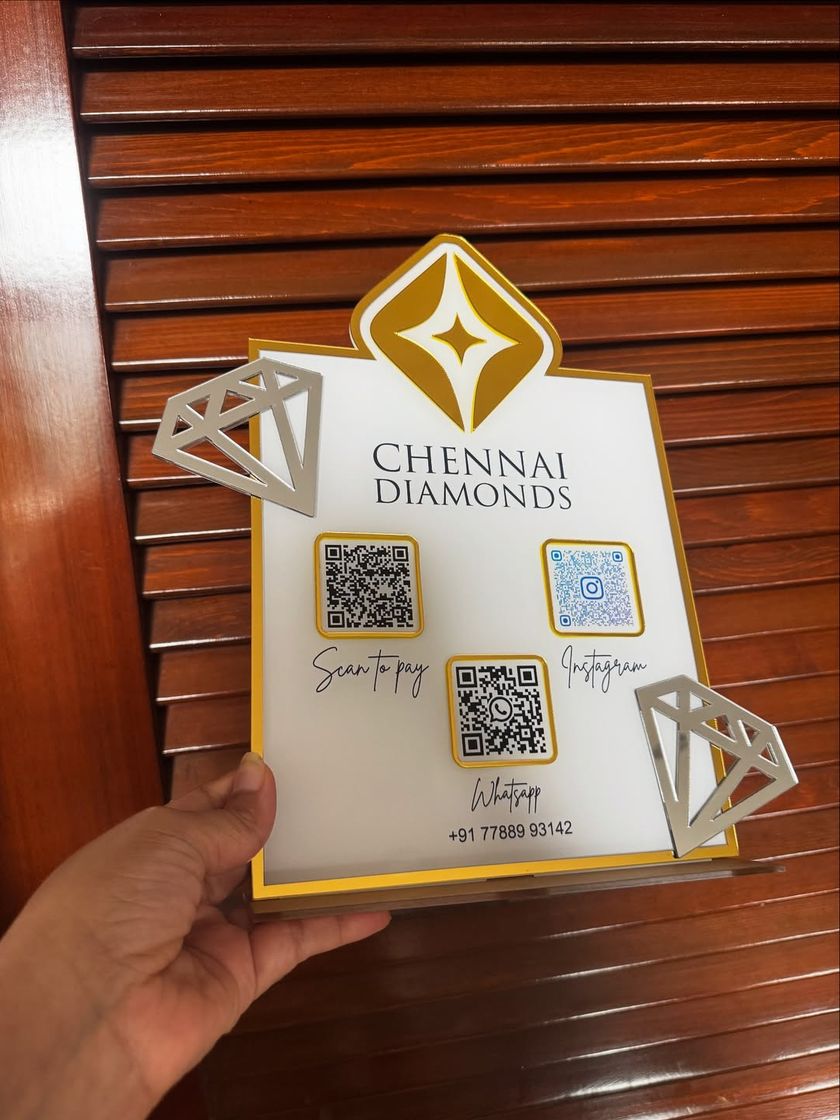 Ditch the paper printouts and give your business a professional edge. We design and create durable, stylish QR code stands that are fully customized to match your brand's logo, colors, and style, making it easy for customers to pay, connect on social media, or contact you. Our stands are perfect for retail stores, cafes, pop-up shops, and service-based businesses.