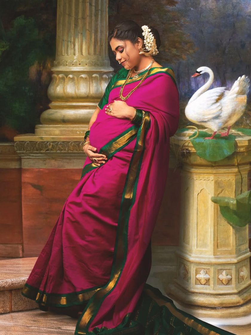 For those who dream of something truly unique, I offer conceptual photoshoots. This series is my tribute to the master artist Raja Ravi Varma, reimagining his iconic paintings to celebrate the beauty of maternity with a fine art approach.