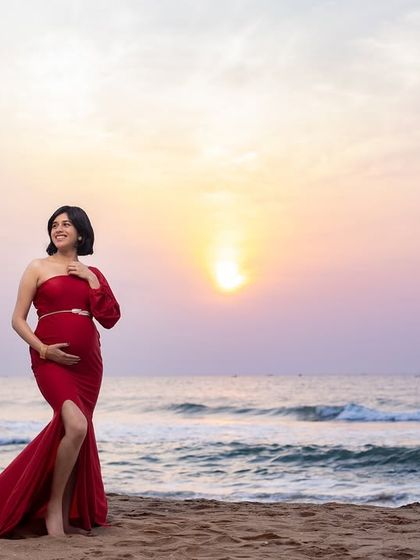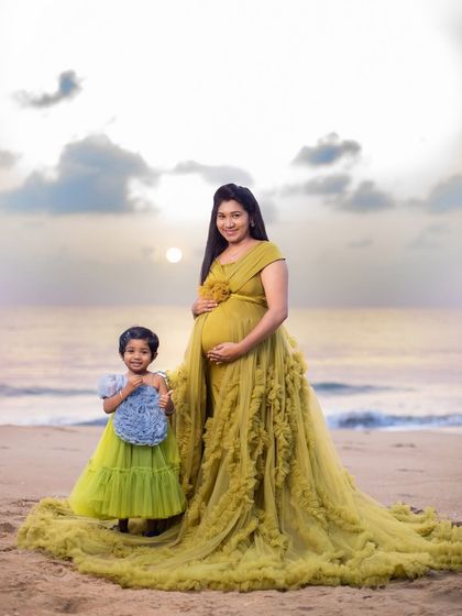 I capture natural maternity photos with your family at your choice of location, offer gowns and props, guide you for relaxed poses, and provide creative edits, including for NRI clients visiting Chennai.