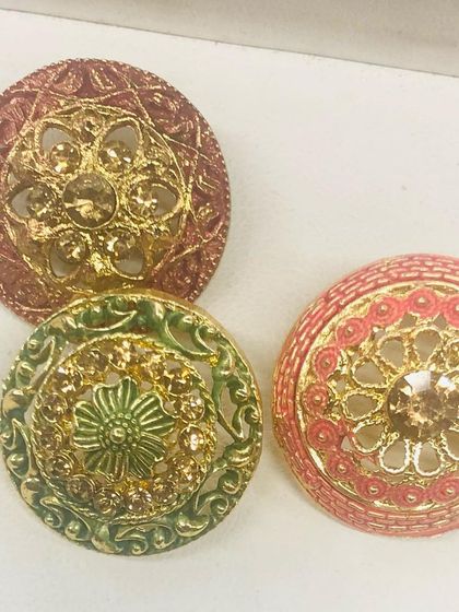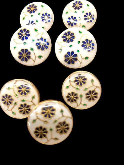 We craft handmade designer buttons featuring intricate floral, geometric, and animal motifs. Our buttons are made using premium metals, stones, and enamel work, perfect for enhancing both ethnic and modern outfits.