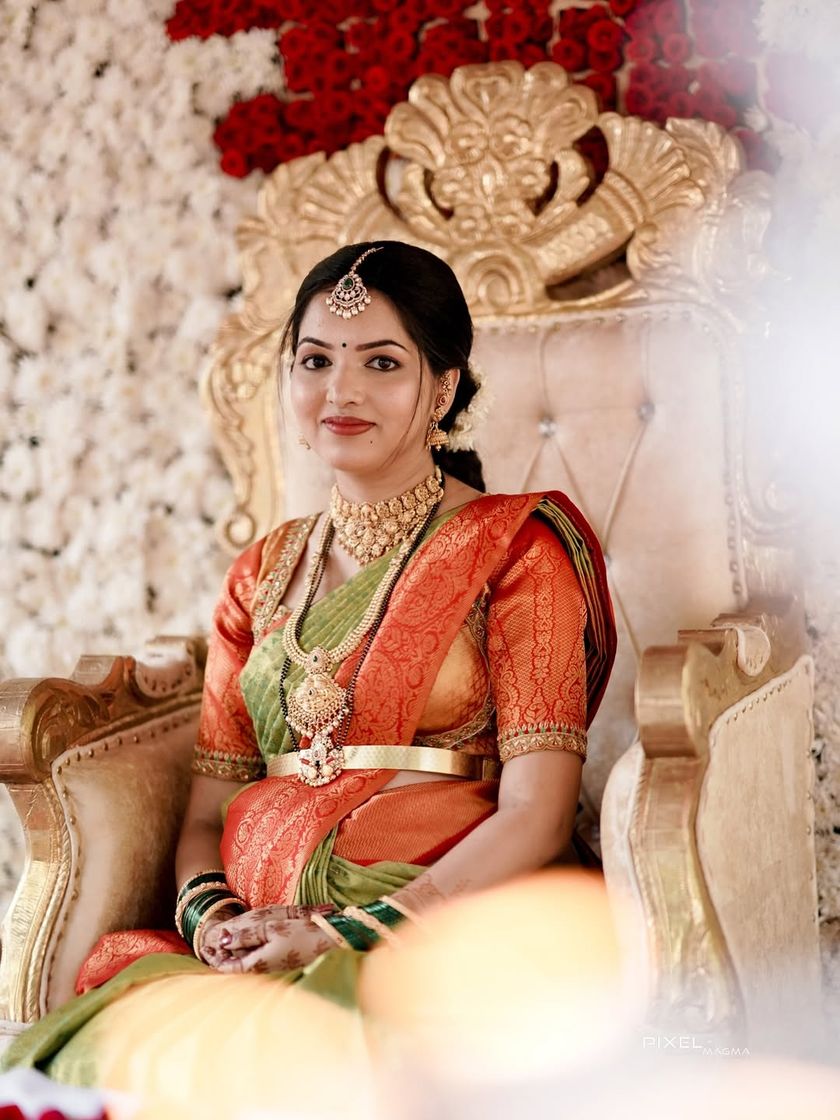 I have a special collection for my Kerala brides, designed to perfectly match the classic elegance of the Kasavu saree. You can rent everything from a simple kasina sara to a full set of layered necklaces like the manga mala or mulla mottu mala for your special day.