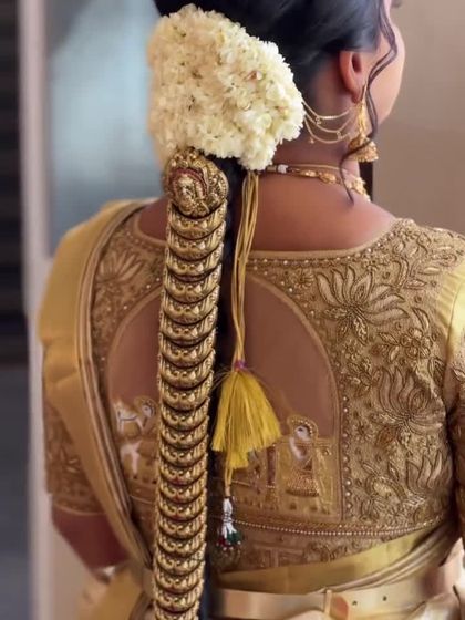 A bridal look is all in the details. My rental collection includes a wide range of accessories to complete your look, including traditional hair jewellery (Jadanagam), armlets (Vanki), and waist belts (Oddiyanam) in both temple and modern designs.