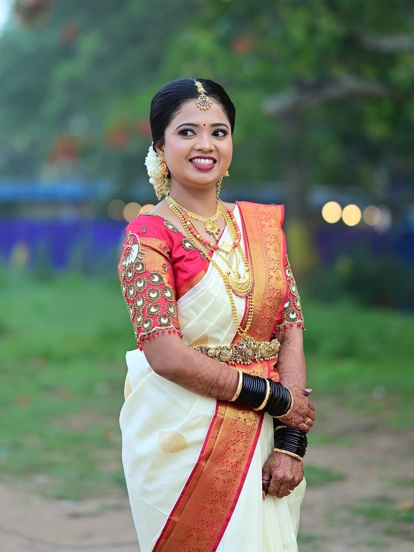 I specialize in creating timeless looks for South Indian ceremonies. My focus is on flawless, long-lasting makeup that complements your silk saree and temple jewellery, ensuring you look radiant from the first ritual to the last. This gallery includes a variety of styles, from bold and traditional to soft and contemporary, all using techniques that guarantee your makeup stays perfect.
