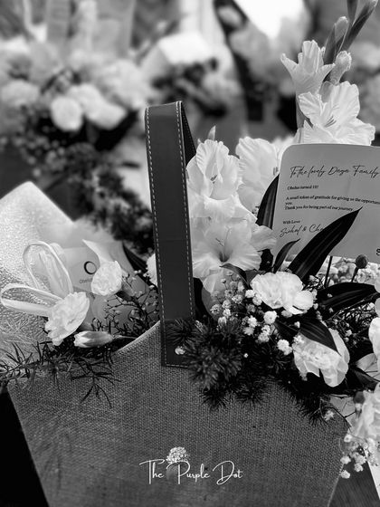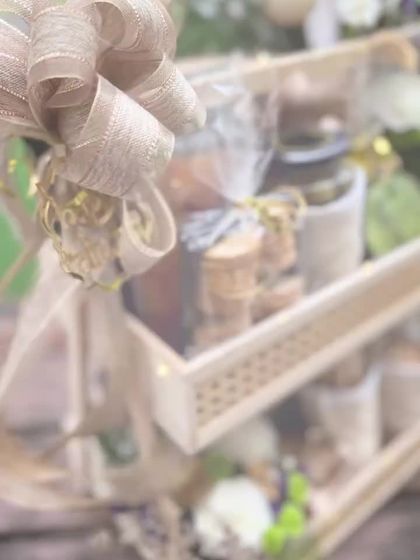I believe presentation is paramount. It’s the first chapter of the gift's story. This is where I showcase my styling service, where clients provide the gifts and I provide the magic, turning individual items into a cohesive and stunning display with custom wrapping, florals, and my signature finishing touches.