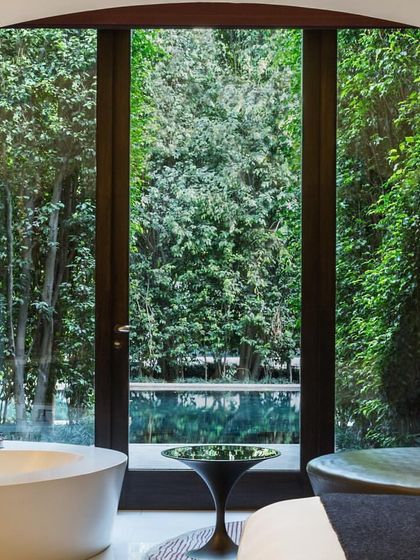 We offer luxurious suites and rooms designed with contemporary aesthetics and earthy tones. Each accommodation features large beds, freestanding bathtubs, spacious seating areas, and expansive windows overlooking our lush 8-acre property.