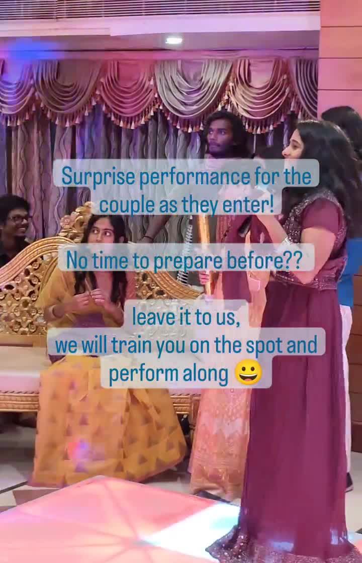 My service goes beyond just dance steps. I help plan and host the entire sangeet, from unique couple entries and fun games to managing the flow of the event, ensuring a seamless and joy-filled celebration for everyone.