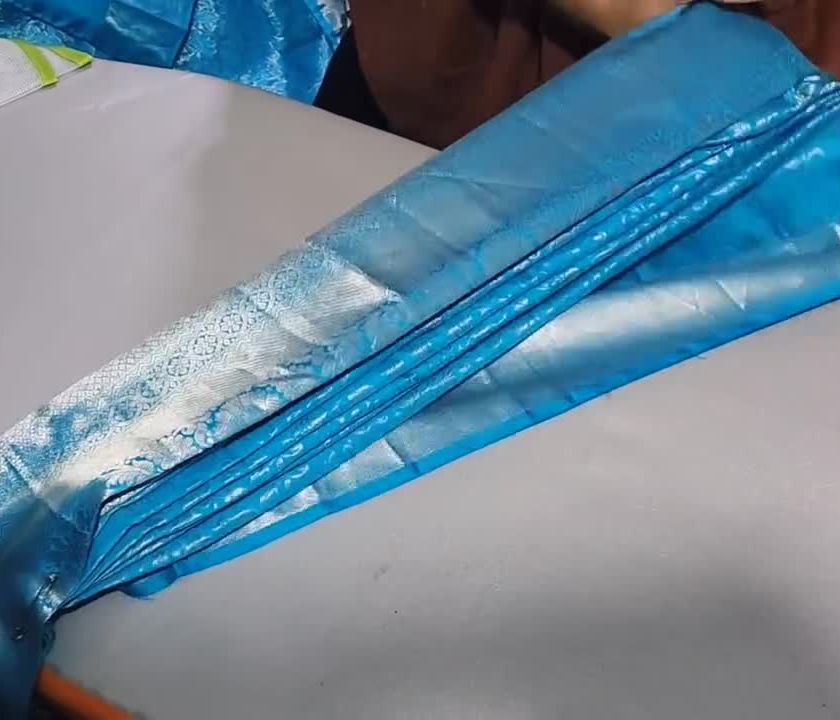 See how we transform your saree into a ready-to-wear piece. Each saree is patiently pleated by hand, ironed to set the folds, and then prepared for delivery with either hanger folding for local use or compact box folding for travel.