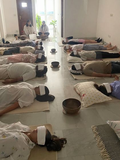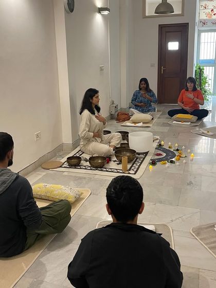We organise group events for private and corporate clients with yoga, sound healing, and wellness activities, either at our Delhi studio or your location, for something more meaningful than a regular party or team outing.