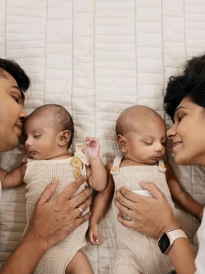 We photograph newborns safely with over 7 years of experience, offering both studio setups with props and relaxed home sessions, and we include family members and twins for real, memorable images.