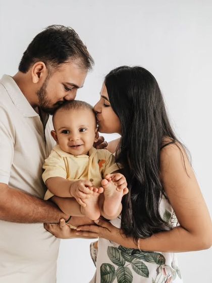 My studio is designed to create clean, timeless, and minimalist portraits that put all the focus on your family's connection. Using simple white or grey backdrops and beautiful lighting, I capture everything from classic posed shots to spontaneous laughter and play. This style is perfect for families of all sizes and ages.