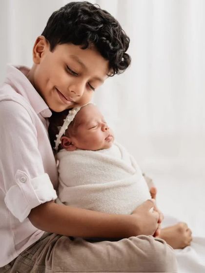 My studio is designed to create clean, timeless, and minimalist portraits that put all the focus on your family's connection. Using simple white or grey backdrops and beautiful lighting, I capture everything from classic posed shots to spontaneous laughter and play. This style is perfect for families of all sizes and ages.