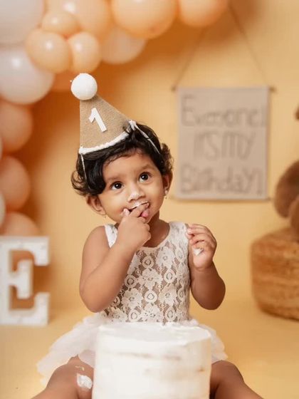 This is the highlight of my three-part session, where things get fun and messy. After the classic portraits, we move to the cake smash for those sugary grins, followed by a happy bubble bath splash to clean up and capture pure joy.
