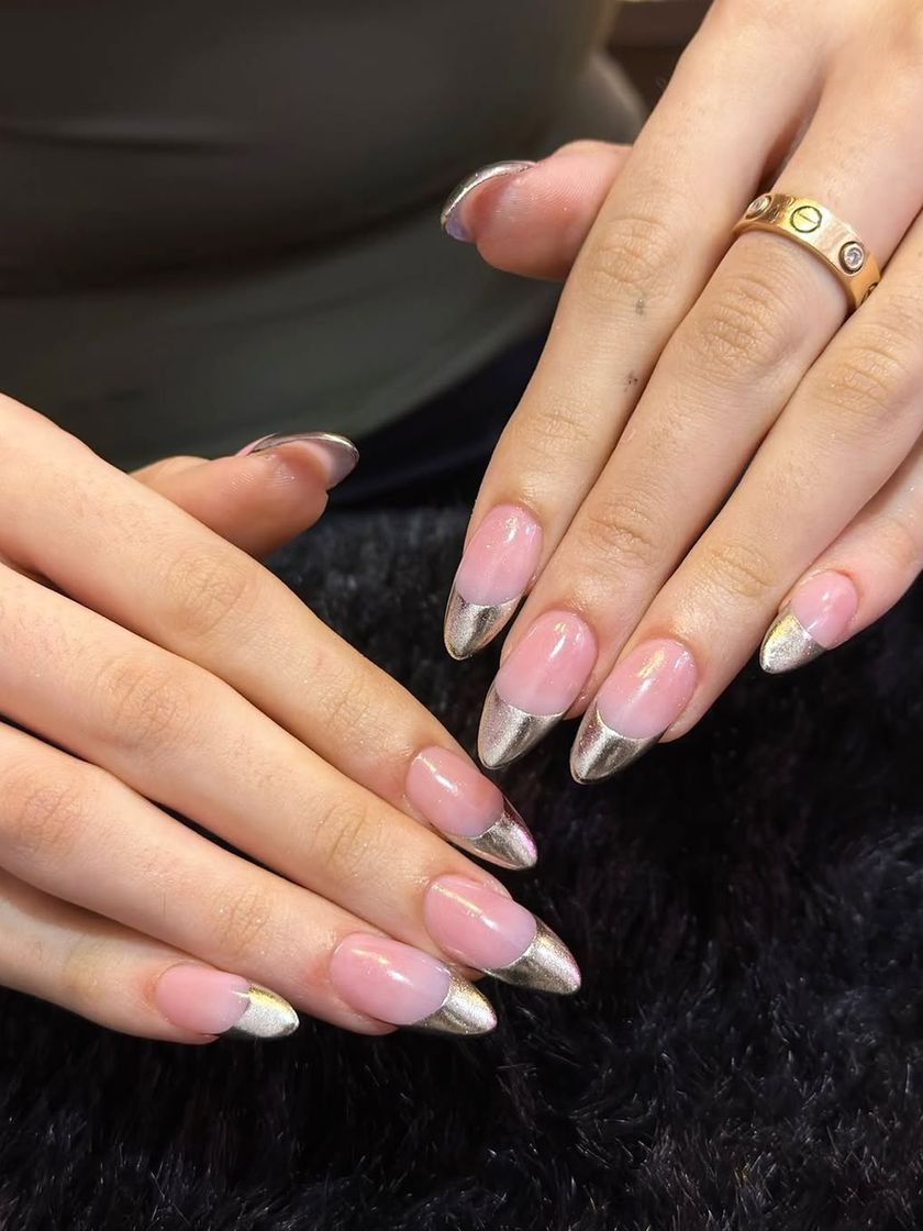 I love a classic French manicure, but I also love to give it a modern twist. This collection shows my work with colored tips, glitter lines, chrome finishes, and sharp shapes like stiletto or coffin. I can create anything from a timeless white tip to a bold, graphic design.