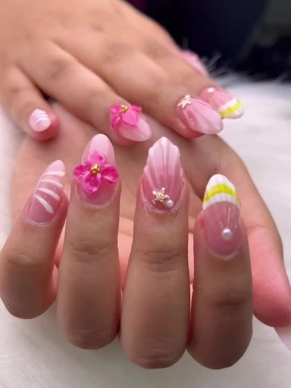 For those who want their nails to be a true work of art, I specialize in 3D and embellished designs. Using techniques like sculpted gel, I create everything from delicate flowers and shells to bold crystal placements and unique textures like water droplets.