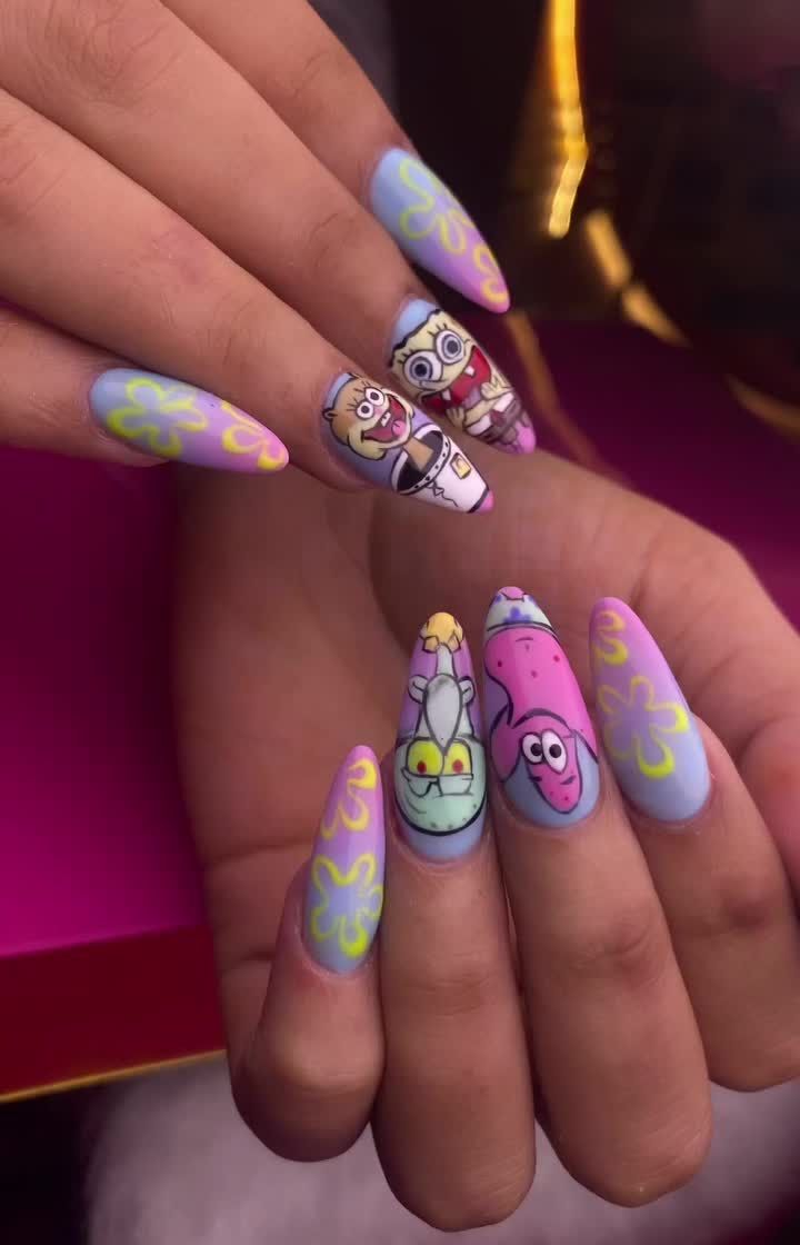 Show off your fun side with my custom character and playful nail art. From your favorite cartoon characters like SpongeBob and the Minions to quirky designs with smiley faces and fruit, I can paint anything you can dream of.