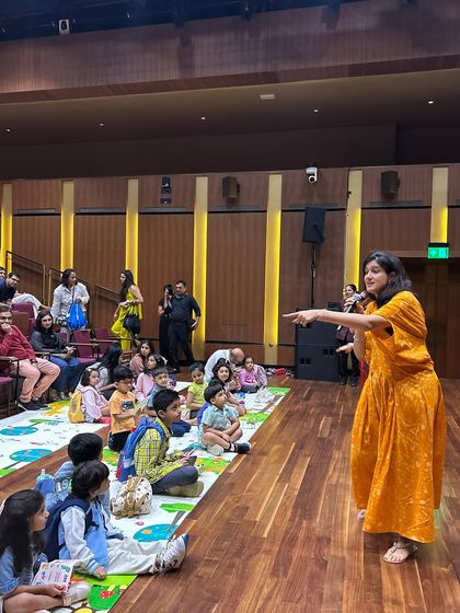This is one of our favorite themed workshops, based on our musical book. Children join the surli koyal (sweet-singing cuckoo) and other animal friends to explore the sounds of the forest, learning about Indian instruments like the sitar, tabla, and bansuri through an interactive story.